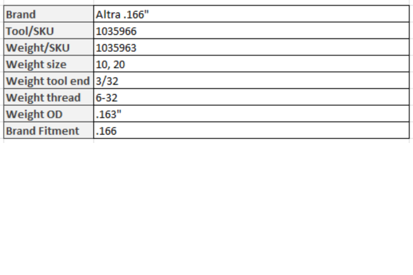 The Pinnacle of Precision & Performance™ Altra Forward Mass System (FMS) micro insert weight system offers fine adjustment of total arrow weight to increase F.O.C. and improve down range accuracy. The micro insert weights are designed for use with all Altra 166 arrows and are stackable for infinite weight adjustment.